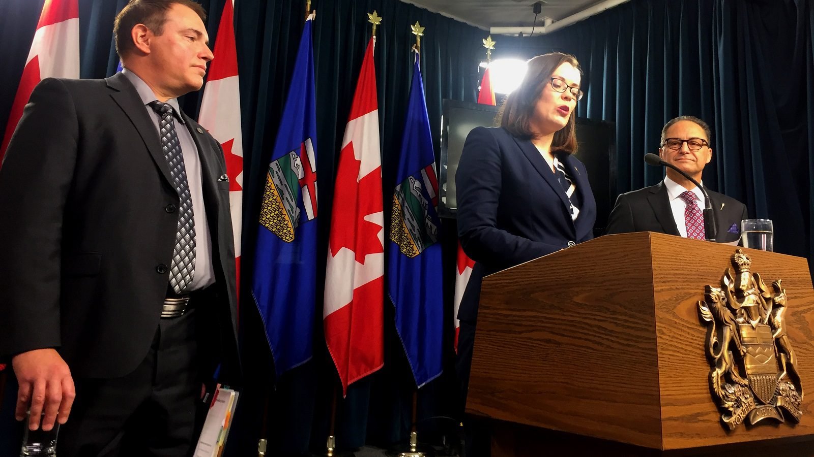 Caption: Minister Ganley and Minister Ceci are joined by Alain Maisonneuve, president and CEO, Alberta Gaming and Liquor Commission (AGLC) to discuss cannabis legalization and amendments to the Gaming and Liquor Act.