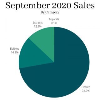 Topicals saw a mild increase as well, however, until more products hit the market, this category’s share will continue to be small. Production in this category increased 30.25% in September, so new inventory may be on the shelves soon.
