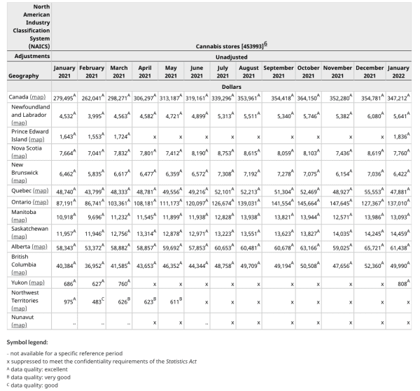 Canadian retail cannabis sales declined 2.1% in January, according to Statistics Canada. Total sales for the month were $347.2 million, down from $354.8 million in December (revised downward from a previously reported $382.4 million). But while month-to-month sales dipped, year-over-year sales increased 24% compared to January, 2021.