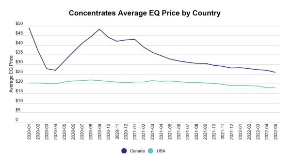Concentrates Average EQ Price by Country