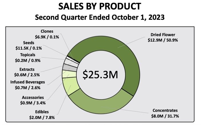 - Dried flower increased 10.5%, up $1.2 million