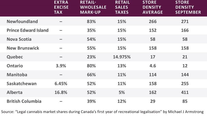 The Variance of Cannabis Tax Regimes in Canada